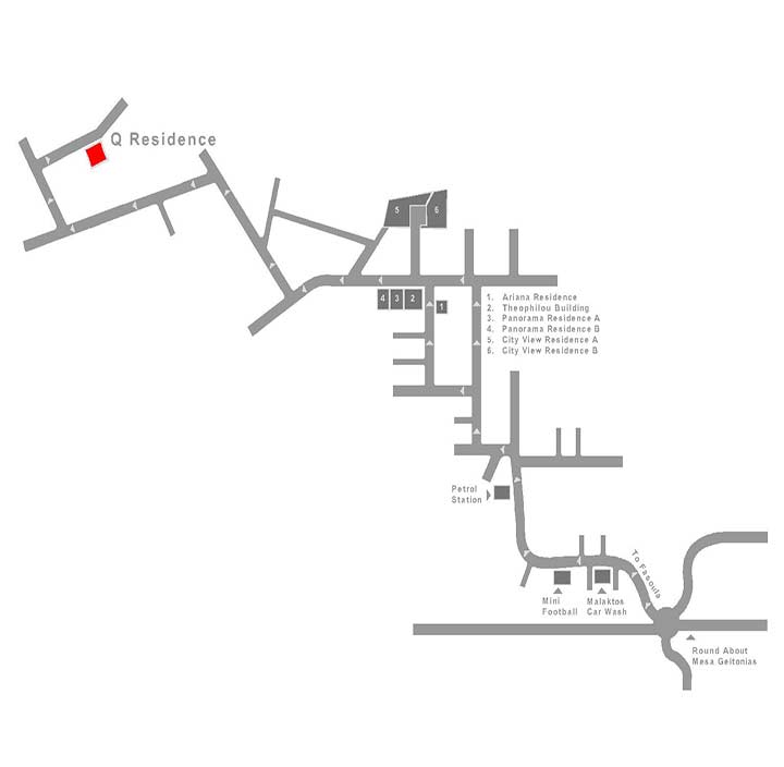 Situated on the hill west of Panthea, the Q Residence is only a few minutes away from the heart of Limassol and at the same time it enjoys the advantages of a tranquil and peaceful environment.